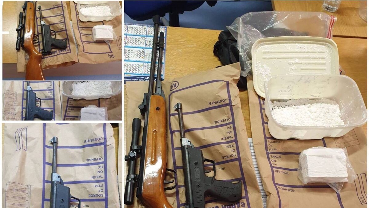 A man has been arrested after two air guns and suspected cocaine was seized in Co Clare.