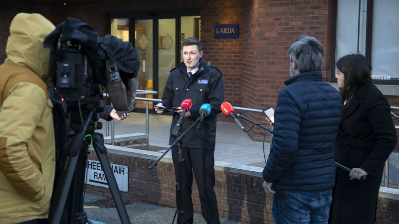 Superintendent Paul Franey of Balbriggan Station speaks to the media at Balbriggan Garda Station on Thursday after a murder investigation was launched following the discovery of the body of 65-year-old Christopher Hall in his home in Balbriggan on Wednesday afternoon. Picture: Colin Keegan/ Collins Dublin