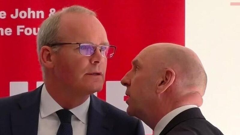 Irish Foreign Affairs Minister, Simon Coveney, being ushered from the room (Hume Foundation/PA)