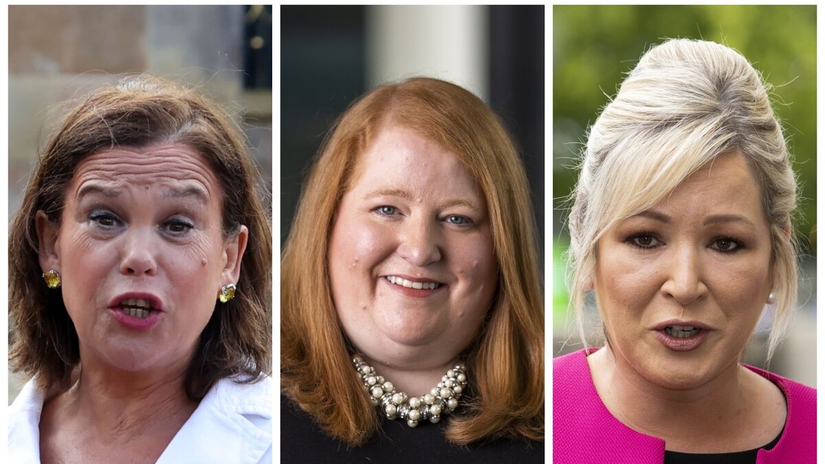 Effigies of Sinn Féin president and vice president Mary Lou McDonald and Michelle O’Neill and Alliance Party leader Naomi Long were pictured on the Eleventh Night bonfire in Carrickfergus.