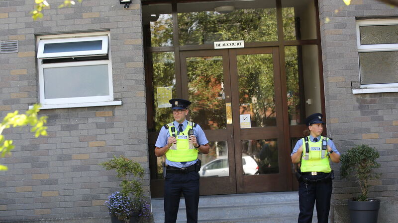 Gardai at the scene outside an apartment Achill Road, Drumcondra Dublin this afternoon. Picture: Gareth Chaney /Collins Photos