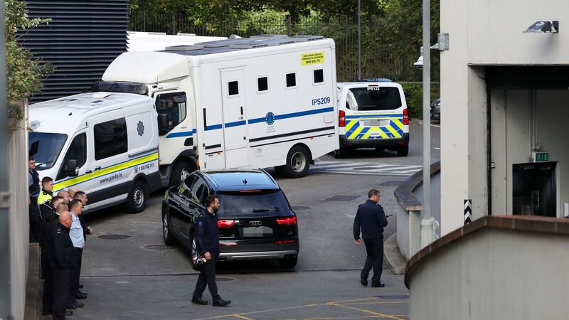 Prison vans arriving at the Criminal Courts of Justice amid a heavy Garda presence for the Gerry Hutch trial today. Picture: RollingNews.ie