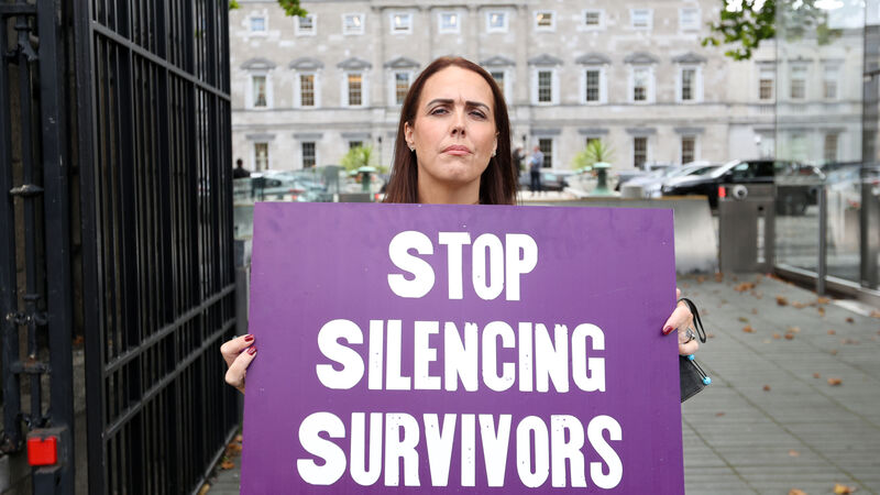 Rape survivor Hazel Behan protesting outside the Dáil last year to demand an end to victim-blaming practices in the court system. Picture: Sasko Lazarov/ RollingNews.ie