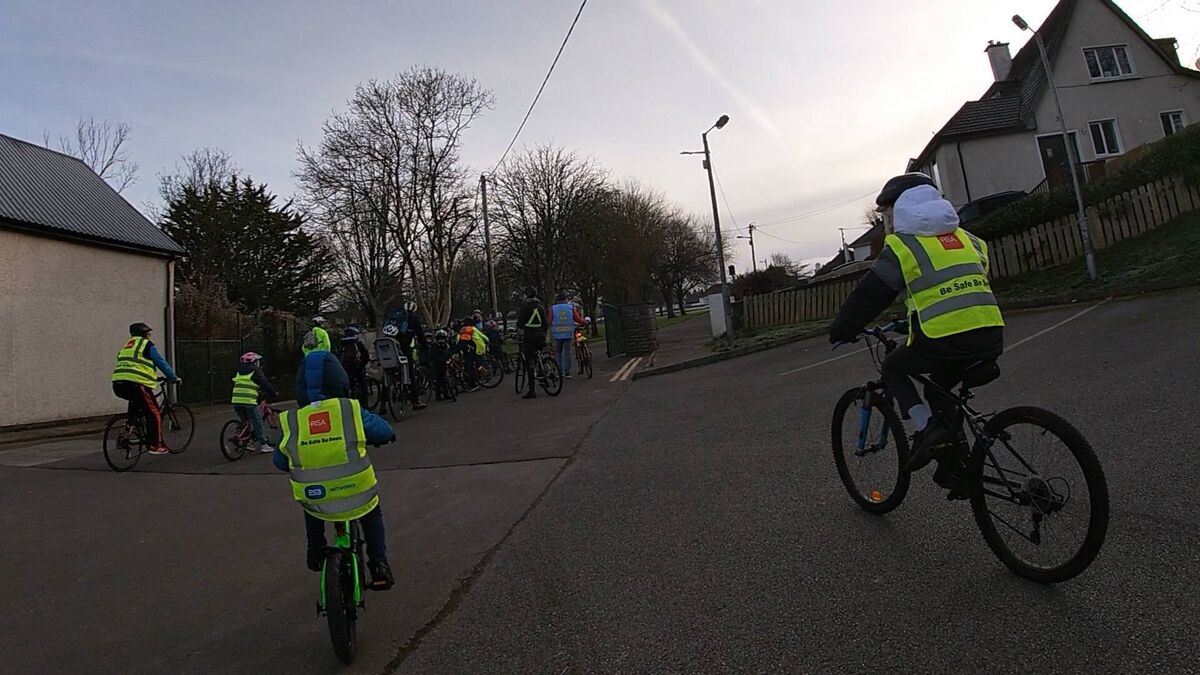 Kevin Long’s son, Cian, aged six, attends Scoil an Spioraid Naoimh, and was among the almost 60 children who took part in the cycle bus to school on Friday. They take a long and circuitous route through Murphy’s Farm and nearby estates because there is no direct cycle lane to the school.
