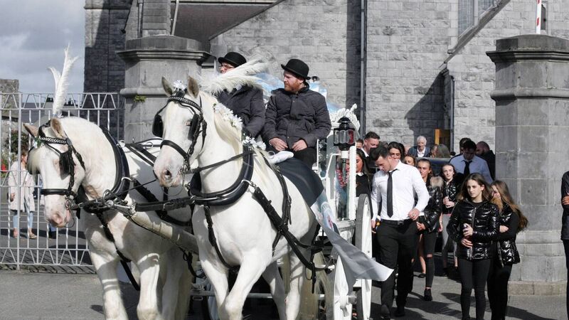 The remains of Mr Dooley, a 43-year-old father of seven who lived in Killarney, were carried shoulder high into the Church of the Assumption in Tullamore for the funeral Mass. Afterwards, a horse-drawn hearse brought the coffin to Clonminch cemetery in the town.