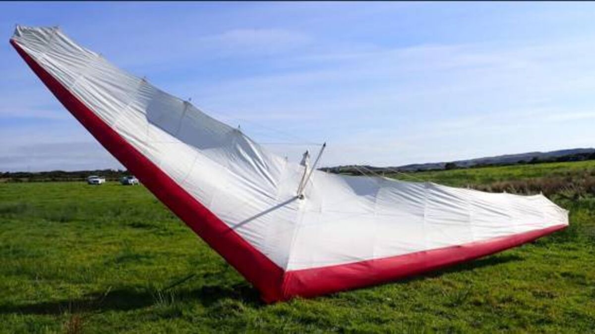 A preliminary report by the Air Accident Investigation Unit into the incident said evidence gathered from the accident site indicated the pilot had travelled less than 100 metres off the ground after launching the hang glider before impacting terrain in the same field. Picture: Air Accident Investigation Unit
