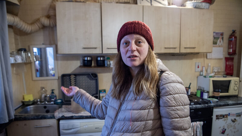 Alina Maranescu, who is heavily pregnant with twins and has a seven-year-old son, was forced to leave her dangerous Cork city flat this week when the ceiling collapsed. Conditions had been so bad in the flat she had posted messages for help on her window in desperation.