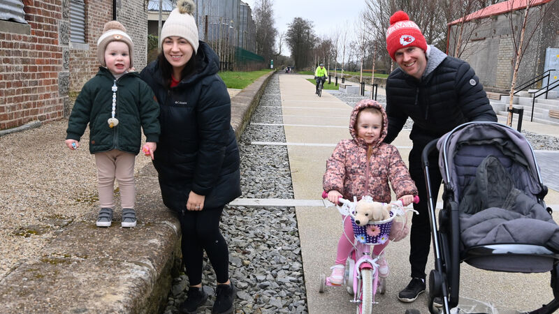 3rd February 2025; Brian and Lydia Lawton and their children Fionn and Indie from Castlemartyr out enjoying the Greenway between Mideton and Youghal at Mogeely on February bank holiday Monday. Picture: Eddie O'Hare