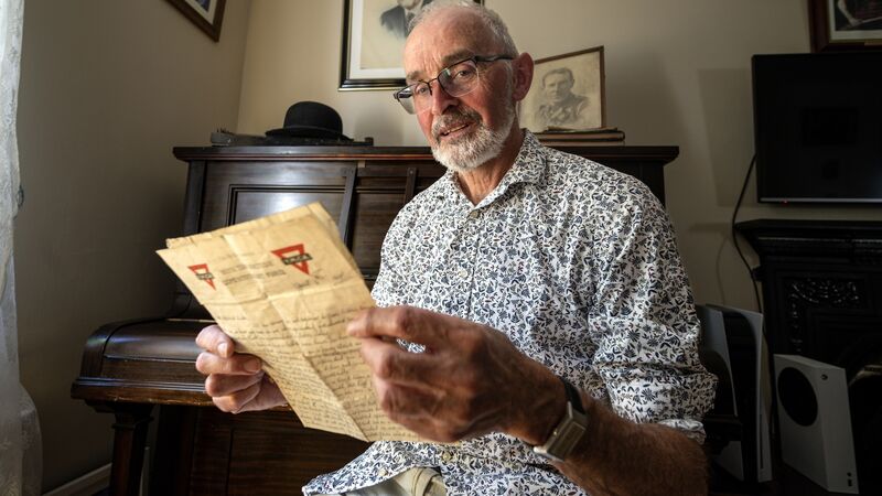 Denis Kenny reads his granduncle Jim Maher’s handwritten letters from the First World War, the ink now so faded it is barely legible. Discovered during a recent family home clear-out near Thurles, the letters have been carefully deciphered to preserve Maher’s final messages from the front. Picture: Chani Anderson