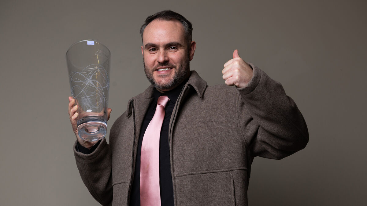 Garry McCarthy with his award after being named Cork Person of the Year 2026 at a ceremony in the Metropole Hotel on Friday. Picture: Darragh Kane