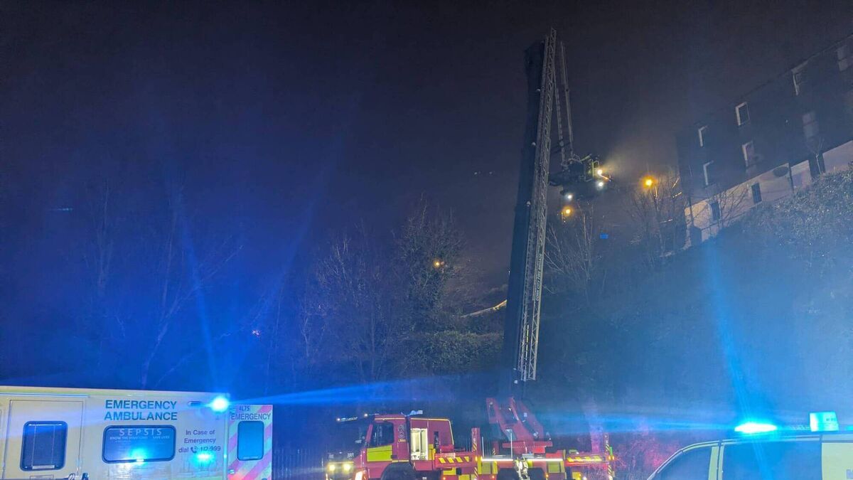 Members of Cork City Fire Brigade used a hydraulic platform to perform 'a long and complicated rescue' on Saturday night after a man fell more than 30 feet. Picture: Cork City Fire Brigade