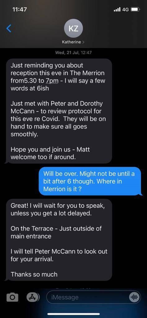 "I didn't actually know that it was going to be an event. He texted me to simply say, 'I am meeting Katherine, in a few days time and she said Dublin. Is there anything you want to brief me on'.