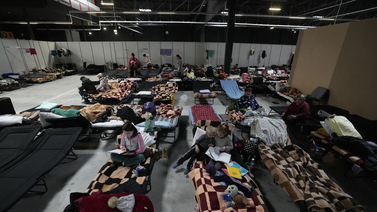Ukrainians gather at a refugee shelter in Nadarzyn, near Warsaw, Poland, Thursday, March 17, 2022. Picture: AP Photo/Czarek Sokolowski