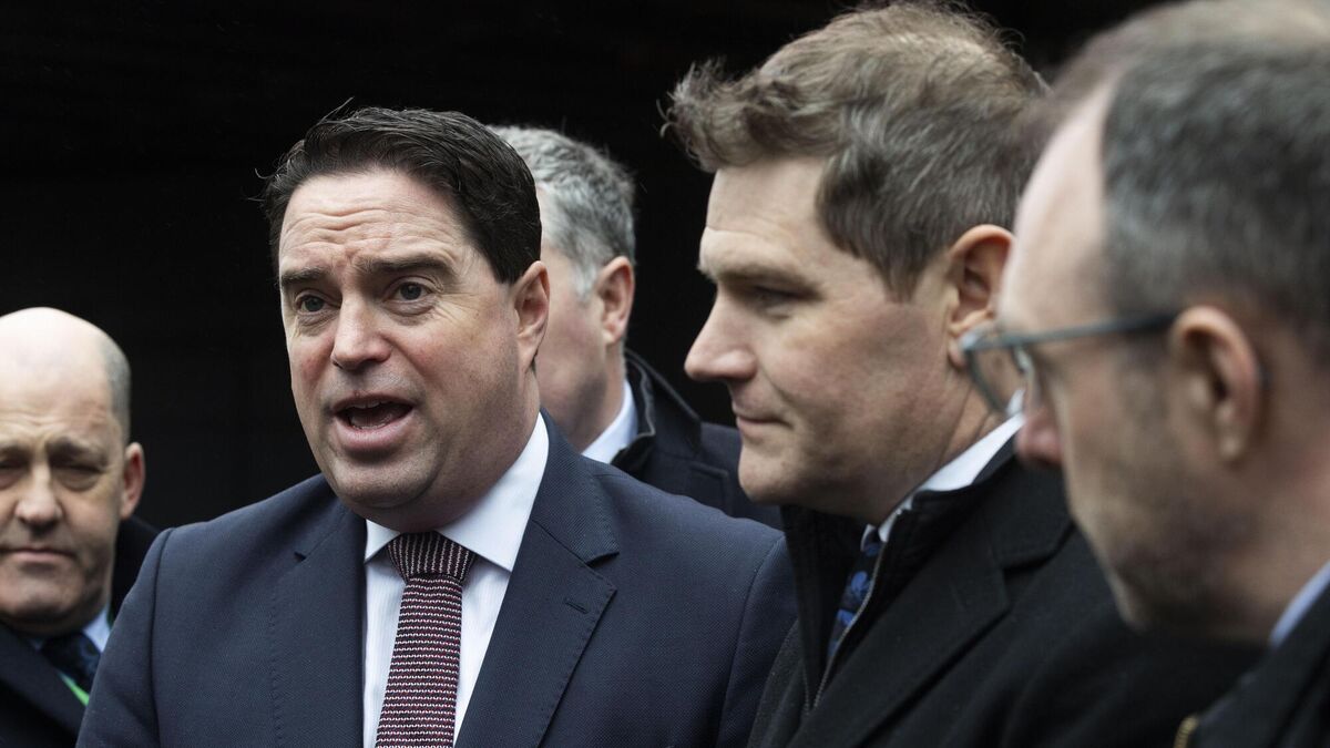 Agriculture minister Martin Heydon; enterprise minister Peter Burke; and minister of state with special responsibility for financial services, credit unions and insurance Robert Troy speak to the media outside Bread 41 to discuss the flour mill scheme. Picture: Sam Boal/Collins photos