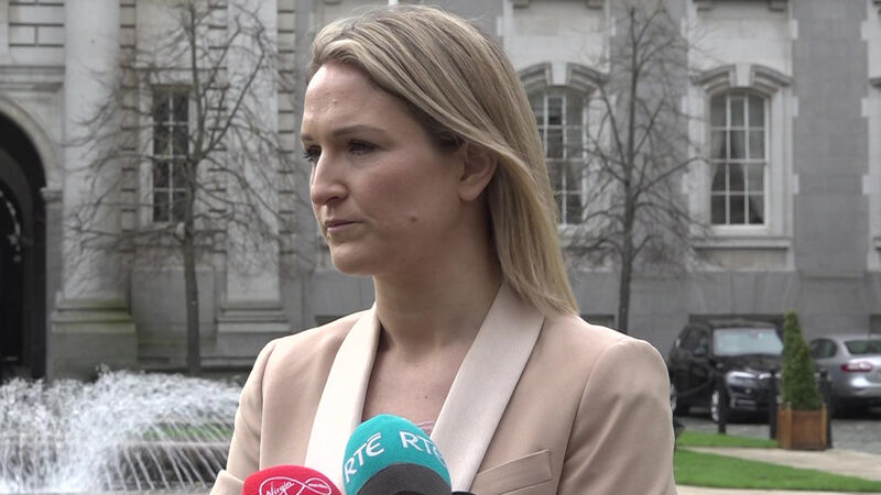 Minister for Foreign Affairs Helen McEntee speaking to the media outside Government Buildings in Dublin. Picture date: Monday March 2, 2026.