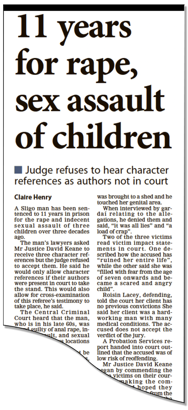“This is when 12 honest people on a jury in Ireland have found this person guilty. There’s only a 10% conviction rate so they’ve really thought this through and said ‘this man is guilty.’ And then these people decide to give up a character reference – to say he’s a good father after being found guilty of raping his son?”