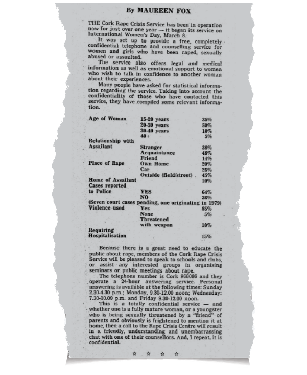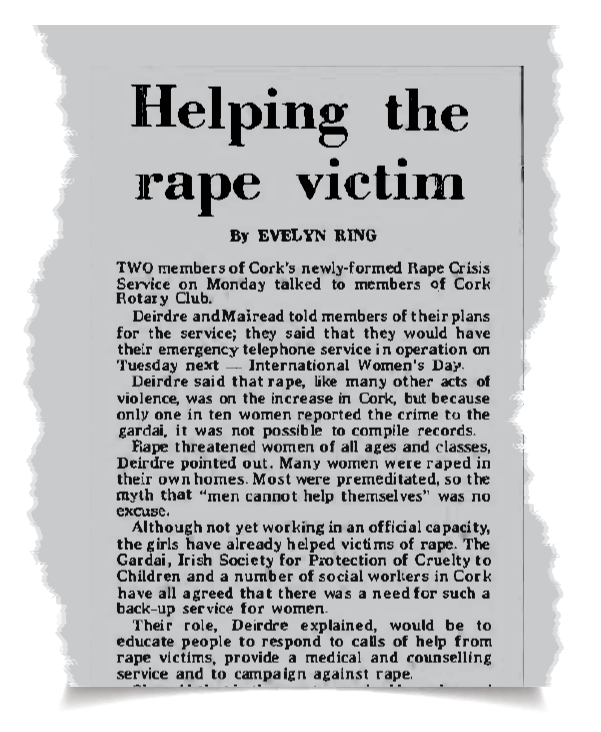ork was only the second rape crisis centre in Ireland, set up after Dublin.