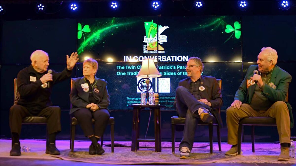 Sean and Judy Clerkin represented the Minneapolis parade, while Peter Kenefick was there for St Paul. They began by swapping stories of how the parades began in the 1960s.