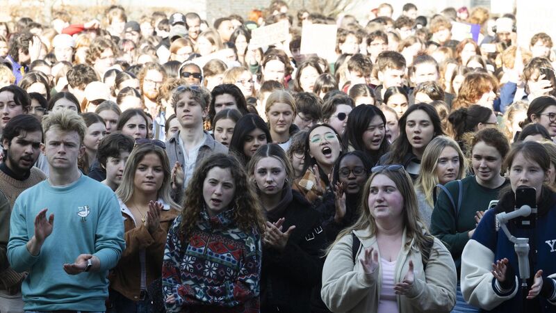 Thousands of UCD students protest on the campus calling for systemic change in how UCD responds to sexual violence and gender-based harm. Photo: Sam Boal/Collins Photos