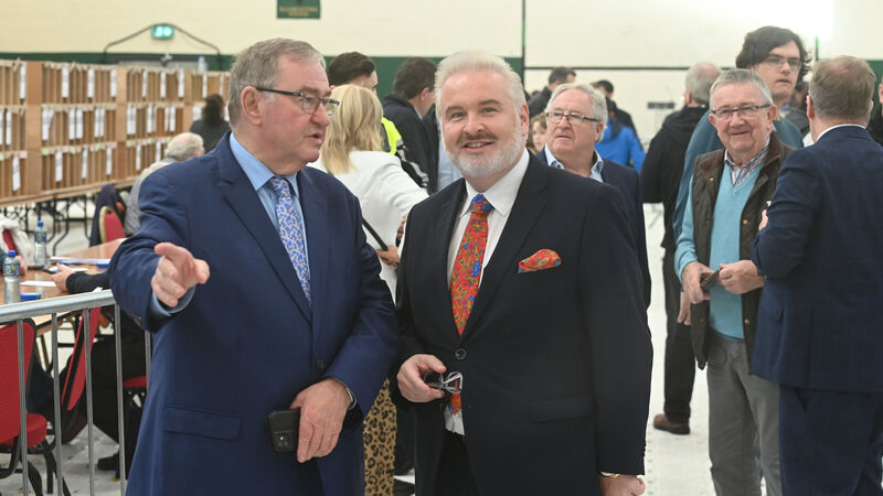 Noel O'Flynn with his son Cork TD Ken O'Flynn at Nemo Rangers during the General Election count in 2024. Picture: Larry Cummins