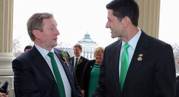 Ryan, who recently paid a visit to Graiguenamanagh, Co Kilkenny, where his ancestors are from, paid a warm tribute to Kenny in his remarks before lunch. Kenny signalled a willingness to mediate between the Republican Ryan and Democrat Obama at a place halfway between Graiguenamanagh and Moneygall, where Obama’s ancestors are from.