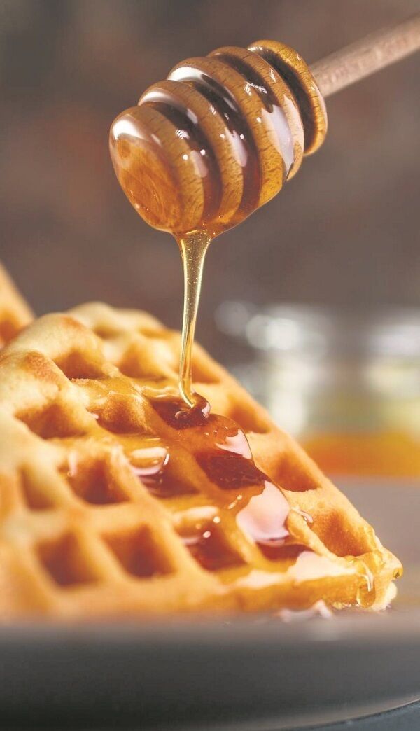 Ripe berries of all kinds, strawberries, raspberries, loganberries, boysenberries, sliced peaches, nectarines, apricots and bananas are all delicious with waffles. Pile the fruit on top of hot waffles, or serve it on the side of the plate. A blob of softly whipped cream doesn’t go amiss!