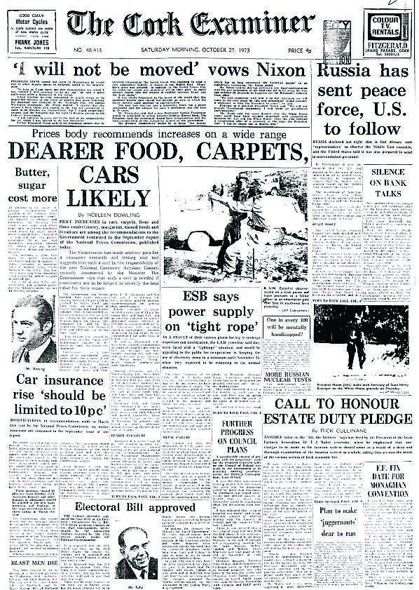 A separate story revealed that power supply was on a “tightrope” and the ESB was appealing to the public for co-operation in keeping the use of electricity down to a minimum until November 24.