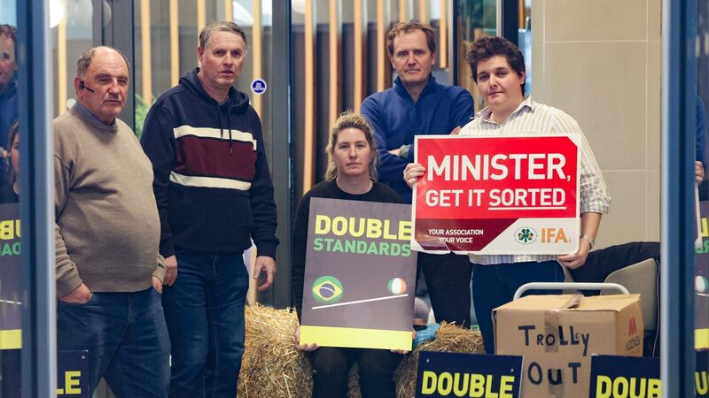 Members of the Irish Farmers’ Association (IFA) protest inside Bord Bia headquarters in Dublin, as part of the dispute over the agency’s leadership. Picture: Leah Farrell / © RollingNews.ie