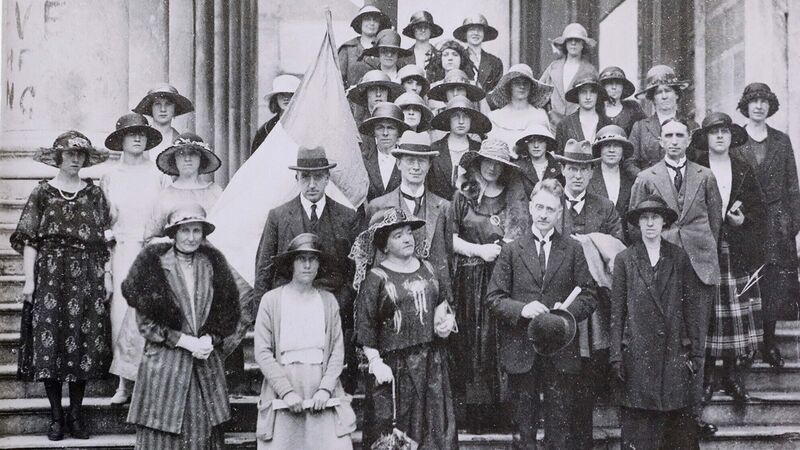 Cumann na mBan with William T Cosgrave and members of the free state government on the Cork Courthouse steps in August 1923. Picture courtesy of the Cork Public Museum