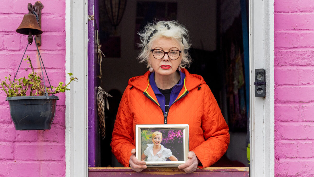 Deirdre McLaughlin holds a picture of her sister, Siobhán Kearney, at her home in Dalkey, Dublin. Picture: Gareth Chaney