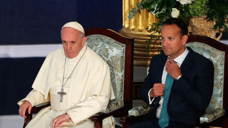 Pope Francis and then taoiseach Leo Varadkar at Dublin Castle during the Pope’s visit to Ireland for the World Meeting of Families in 2018. Mr Varadkar said that the Catholic Church ‘filled that gap to the benefit of many generations of our people’.