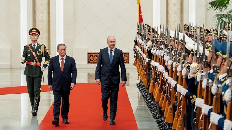 Taoiseach Micheal Martin with Chinese premier Li Qiang in Bejing. Picture: Government of Ireland/PA Wire