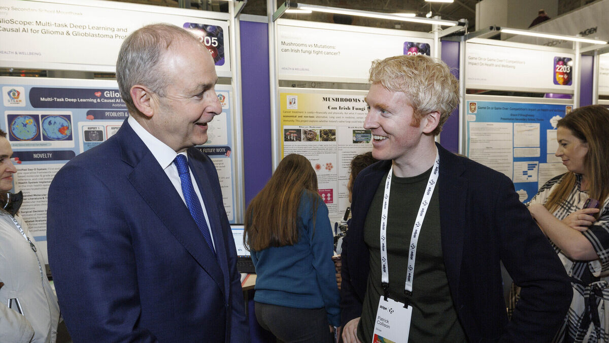 Taoiseach Micheál Martin with Patrick Collison, co-founder and CEO of Stripe at the Stripe Young Scientist and Technology Exhibition 2026 in the RDS. Brothers Patrick and John Collison are two of Ireland's 11 billionaires. Picture: Conor McCabe Photography