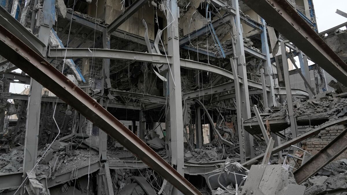 The shattered structure of a police station after it was hit in a US-Israeli strike in Tehran, Iran. Picture: Vahid Salemi/AP