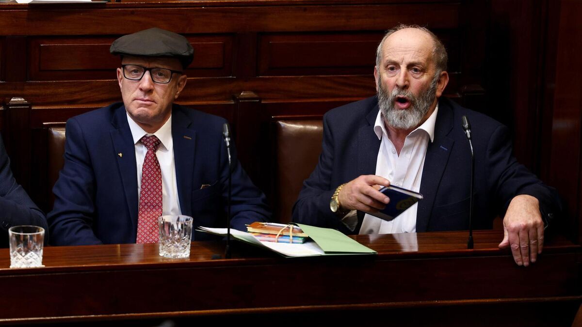 Brothers and Independent TDs for Kerry Michael Healy Rae and Danny Healy Rae in Dáil Éireann on April 9 2024 after the nomination of Simon Harris as then taoiseach. Picture: Maxwell's