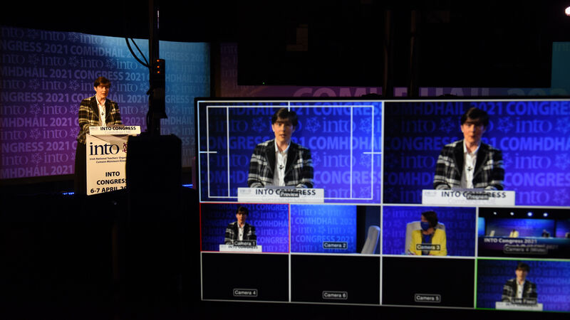 Education Minister Norma Foley addressing delegates at the Irish National Teachers' Organisation's virtual congress this week. Picture: Moya Nolan