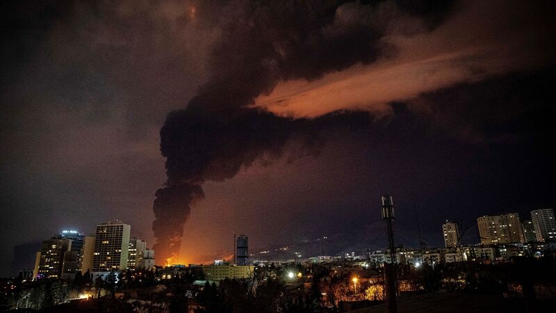 Flames and smoke rising from an oil storage facility in Teheran struck amid the US–Israeli air strikes on Iran's capital late on Saturday. Picture: Arileza Sotakbar/ISNA/AP