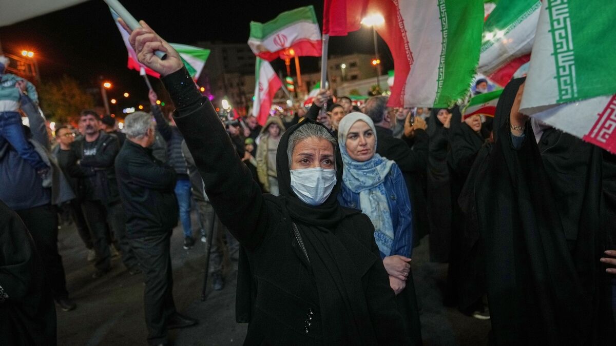 Women hold Iranian flags during a pro-government gathering in a square in Tehran, Iran. Picture: Francisco Seco/AP