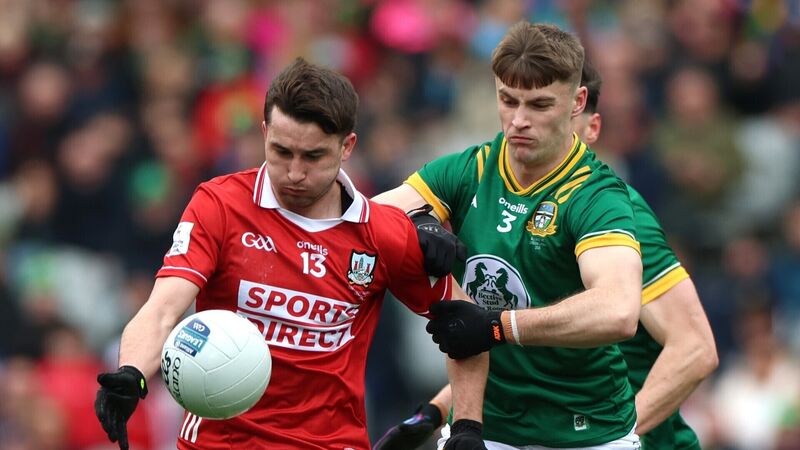 Cork’s Chris Óg Jones and Meath’s Sean Rafferty battle in the Allianz Football League Division 2 final in Croke Park, Dublin, last month. Picture: James Crombie/ Inpho