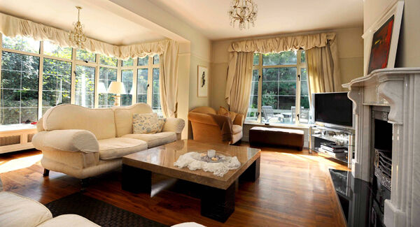 As might be expected, the drawing room is an elegant, creamy, and low-key space with double aspect that includes a large bay facing south east, with longest side facing due south.