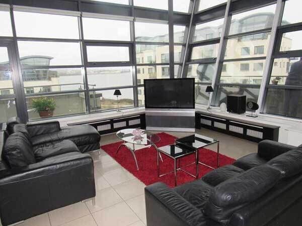 This striking, 1,000-plus sq ft two-bed crowning glory apartment, complete with soaring ceiling heights, lots of glazing and two roof terraces/balconies (one currently holds a hot tub facing south) is now for sale with agent Conor Smith of Casey & Kingston, and is offered at a time of recovery in apartment values, and escalating rents.
