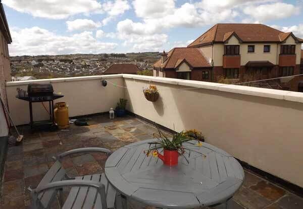 Double doors from the dining area open out on to a slate tiled balcony with open views across Douglas.