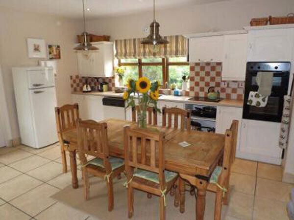 Accommodation-wise, there’s one ground floor en suite bedroom, a 16’ by 16’ lounge, a slightly smaller sitting room, next to a kitchen/dining room that’s also 15’ square... complete with Van Gogh-like Sunflowers in a display vase on the dining table evident in the Hodnett Forde sales images.