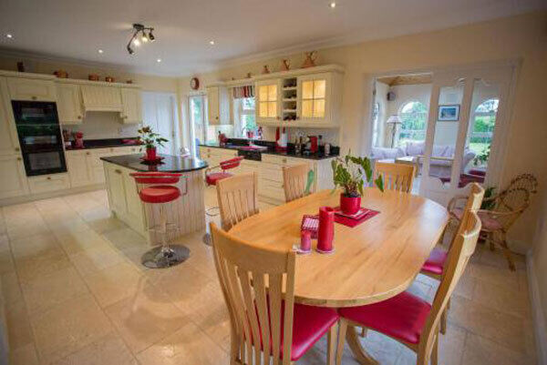On a private, rural site near a large farm just on the edge of the north Tipp town which is served by the Cork-Dublin rail line, it’s a modern 2,500 sq ft family home in tip-top condition, inside and outside, with very high standards of craftsmanship, decor and furnishings, a real walk-in job, according to the agents.