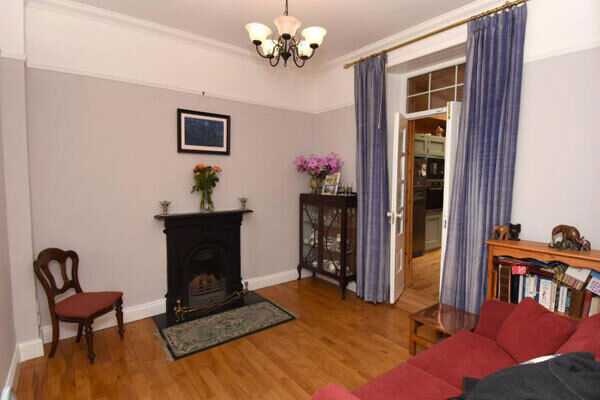 Inside No 1 has two separate reception rooms at ground level, each with fireplaces, the front room’s floored in maple, and the same maple boards quirkly feature on top of the room’s window bay projections.
