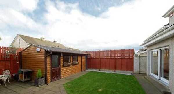 There’s off-street parking, side access to the paved back garden with small lawn section between house and chalet, and the garden fences are raised up a bit for extra screening.