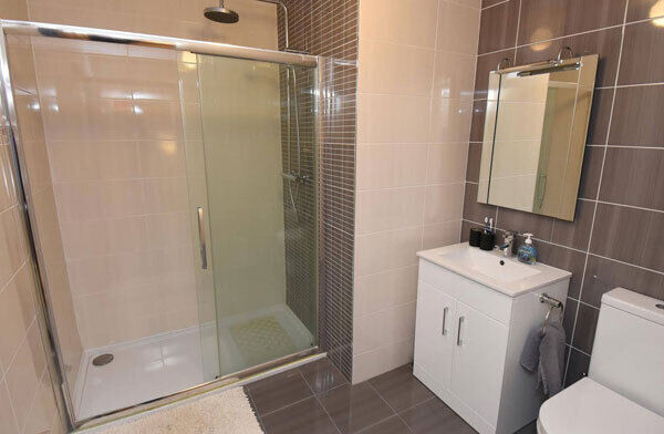 The master bedroom has an en suite with contemporary fitting as well as a walk in wardrobe while there’s also a second bedroom with an en suite.