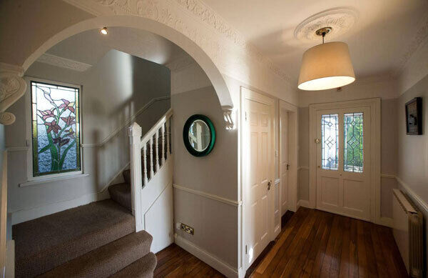 There are some stained-glass windows and floor finishes such as quality oak in the hall, and a good deal of corniced ceilings and decorative ceiling roses.