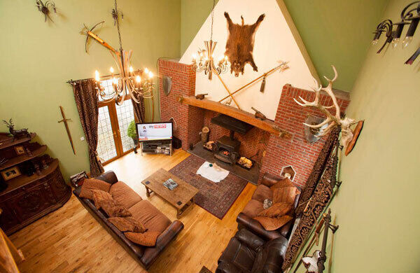Pride of place above the inglenook fireplace goes to a Black Forest bear skin which the owner brought back from a holiday in Prague.