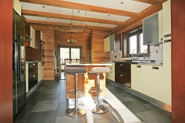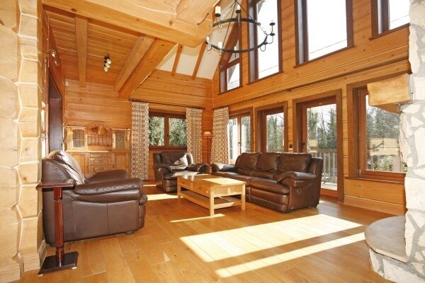 Starting in January 2003, the couple used direct labour to build the basement which is reinforced with steel. When it was finished, a team of carpenters arrived from Poland and spent six weeks building the spruce log structure.